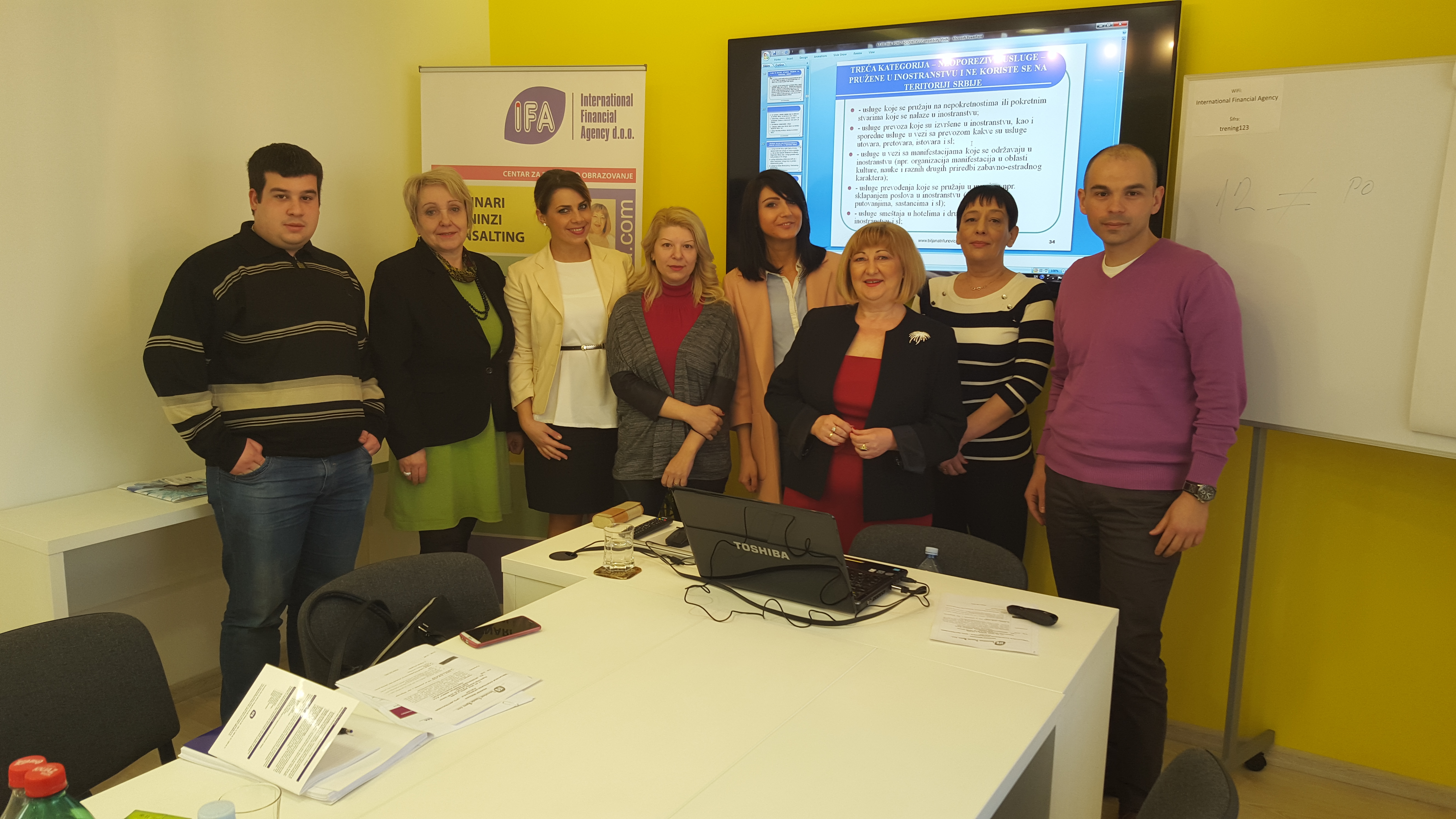 U organizaciji Centra za poslovnu edukaciju Preduzeća „IFA – INTERNATIONAL FINANCIAL AGENCY“ d.o.o., u poslovnim prostorijama Preduzeća IFA u Beogradu, u ulici Đorđa Nešića br. 2., 17.03.2016. godine, održan je jednodnevni seminar na temu : “IZBEGAVANJE DVOSTRUKOG OPOREZIVANJA – SPOLJNOTRGOVINSKI POSLOVI”