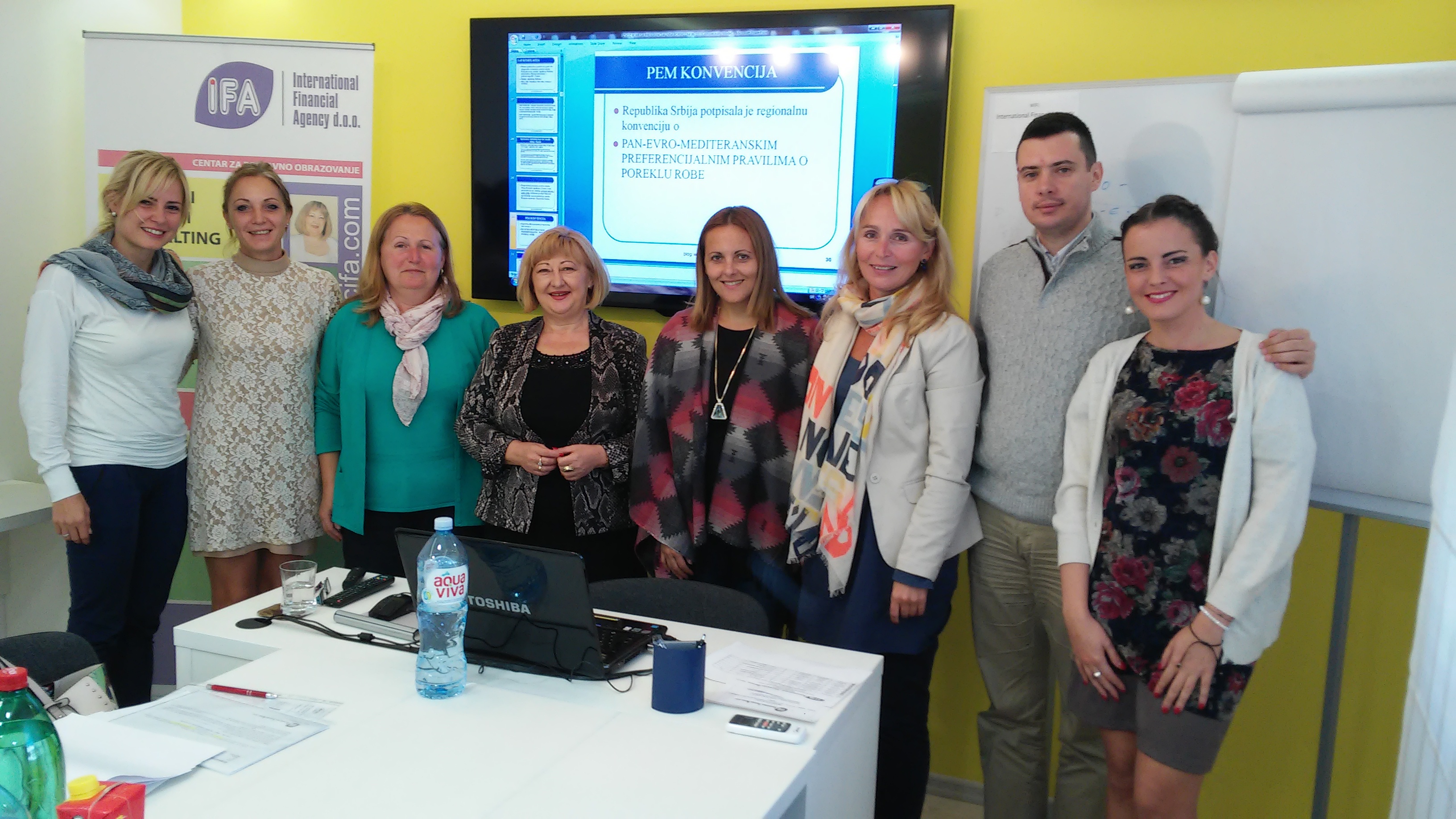 U cilu upoznavanja sa postojećim i novim propisima održan je jednodnevni seminar, na temu „ IZVOZ ROBE – SASTAVLJANJE DOKUMENTACIJE O PREFERENCIJALNOM POREKLU ROBE“, u organizaciji Centra za poslovnu edukaciju Preduzeća „IFA – INTERNATIONAL FINANCIAL AGENCY“ doo, u poslovnim prostorijama Preduzeća IFA u Beogradu, u ulici Đorđa Nešića br. 2.