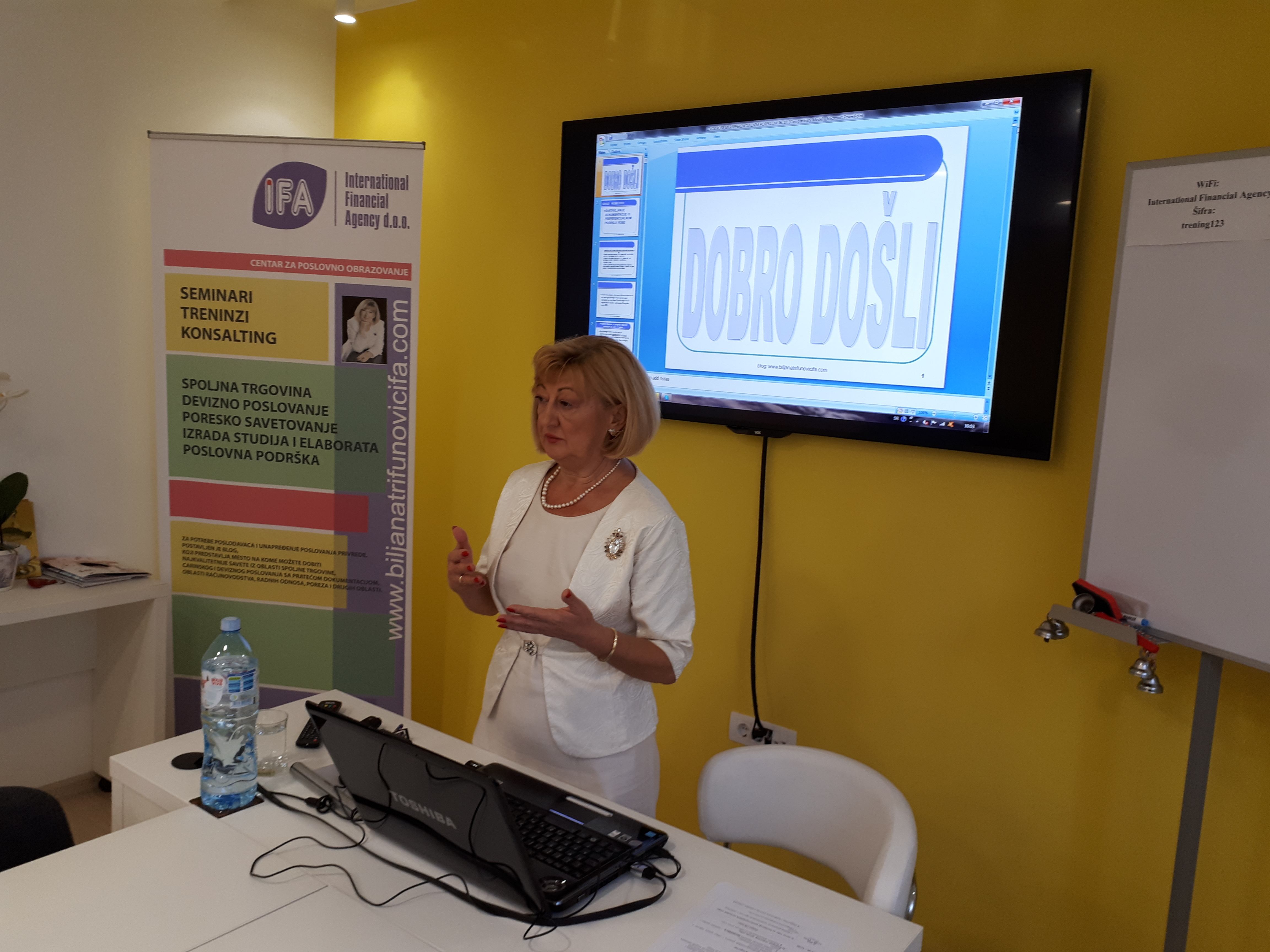 Seminar je održala dipl. ekonomista, Biljana Trifunović, vlasn ica i direktorka firme “ IFA – INTERNATIONAL FINANCIAL AGENCY”, predavač na brojnim seminarima sa dvodecenijskim iskustvom. Takođe je autor stručnog bloga o finansijama, koji se prema izveštaju WORLDPRESS-a ubraja u veoma uspešne stručne blogove na svetskom nivou, kada govorimo o gore navednoj temi (www.biljanatrifunovicifa.com).